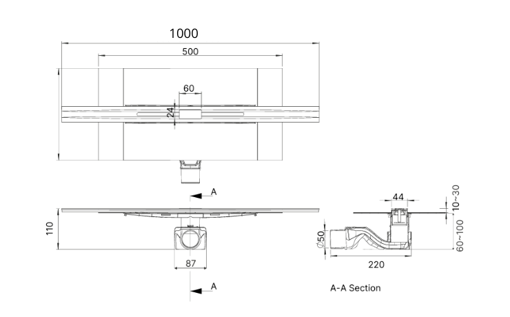 Con una lunghezza di 100 cm, la canalina TrendLine è ideale per spazi doccia di dimensioni medie, offrendo un drenaggio efficiente e un'estetica moderna. Questa misura consente di distribuire uniformemente l'acqua e garantirne un deflusso rapido, evitando ristagni e mantenendo l’ambiente sempre asciutto.