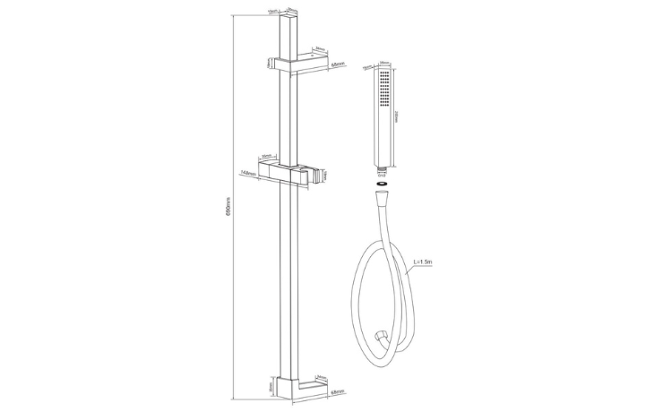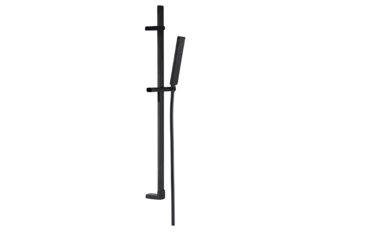 L'asta doccia con saliscendi e doccetta quadra Elliot Rail di Lara, in ottone e con flessibile in PVC da 150 cm, presenta una finitura nero opaco, offrendo un mix perfetto di eleganza, praticità e resistenza per il bagno.