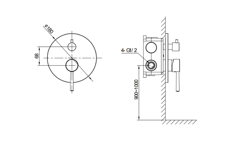 Di diametro 18 cm, il miscelatore Hidden è progettato per un'installazione ad incasso, il che significa che si inserisce direttamente nella parete del bagno per ottenere un aspetto pulito, ordinato e minimalista. L’installazione ad incasso non solo migliora l’estetica del bagno, ma rende anche il miscelatore più facile da pulire.