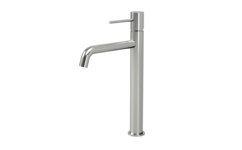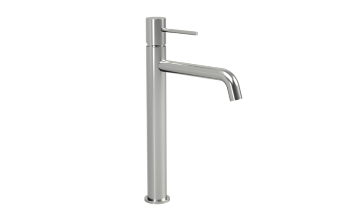 Il miscelatore lavabo alto Hidden in cromo lucido è caratterizzato da un design minimalista e contemporaneo. Il suo corpo alto e slanciato rende il rubinetto ideale per lavabo da appoggio o per vasche di dimensioni più generose, permettendo un flusso d'acqua ottimale senza compromettere lo spazio sopra il lavabo.