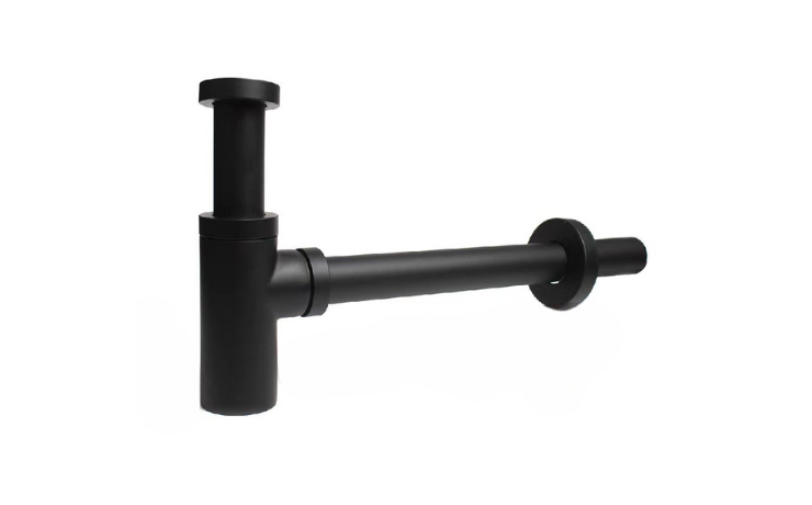 La finitura in nero opaco del sifone lavabo Lizard conferisce un aspetto elegante e moderno, perfetto per integrarsi con stili di arredamento contemporanei.