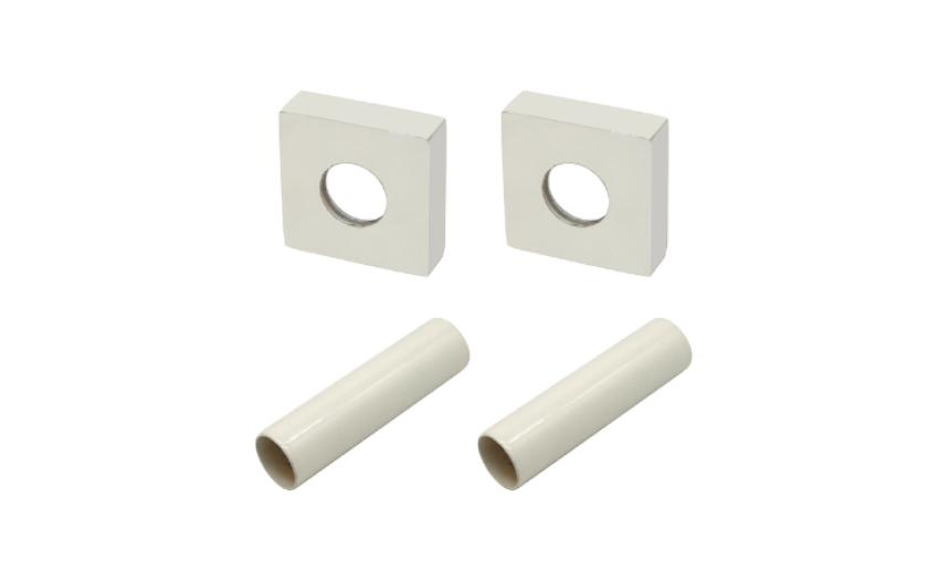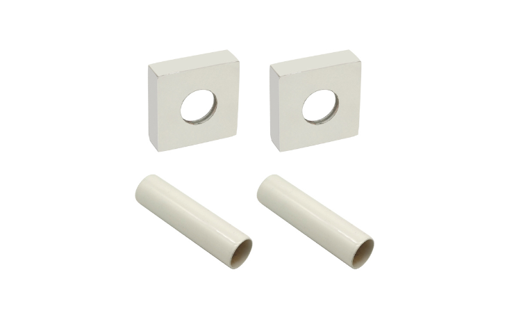 Il kit copritubo quadro di Lara per termoarredi, realizzato in ottone con finitura bianca, è stato progettato per nascondere l'antiestetica visibilità dei tubi di raccordo tra l'impianto e il termoarredo, migliorando l'aspetto estetico dell'ambiente.